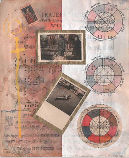 Dessins, collages, aquarelles sur du papier à musique · 1991 · 322 × 282 mm